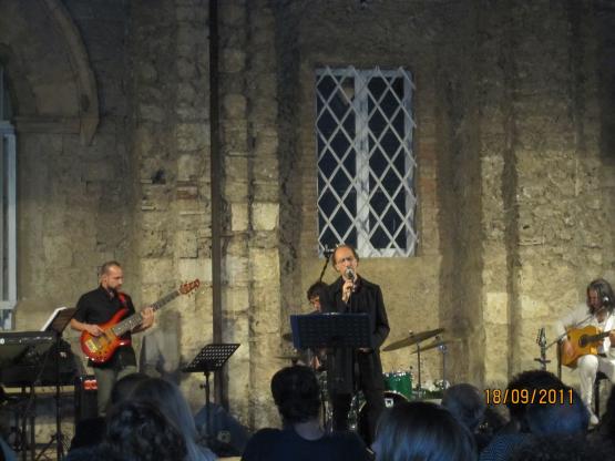 Una volta, in effetti, ho preso la parola davanti un pubblico meraviglioso nella splendida corte del Castello Boncompagni Viscogliosi di Isola del Liri: avrei dovuto introdurre Amedeo e accoglierlo sul palco per il suo recital omaggio a Fabrizio De André, ma per un’insolita mescolanza di emozione e inesperienza lo presentai come Amedeo De André! Un lapsus linguae evocativo di tutta la stima e l’affetto per il mio Maestro. >>
