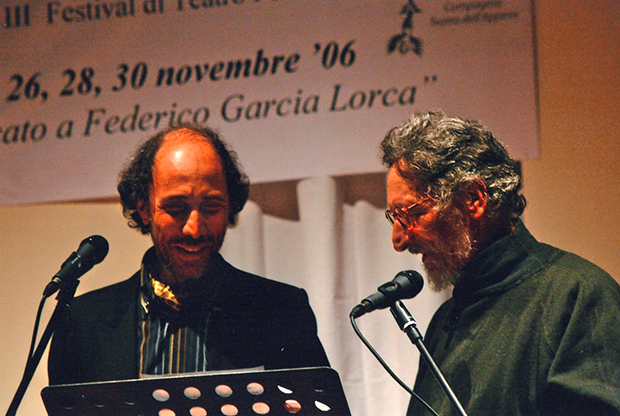 Le foto che ritraggono insieme Alfonso Cardamone e Amedeo di Sora risalgono a due importanti manifestazioni culturali promosse e organizzate dalla Compagnia Teatro dell’Appeso: “Dal teatro oltre il teatro – Parola oh cara!” (1985); “Il Teatro e le Voci”- III Edizione dedicata a Federico Garcia Lorca (2006).
